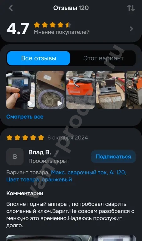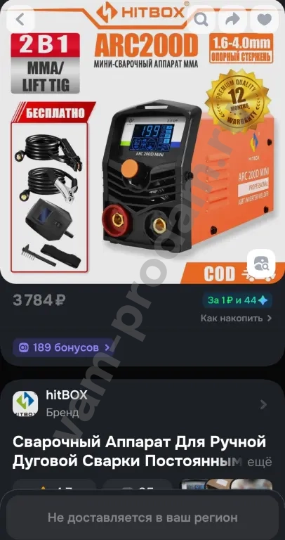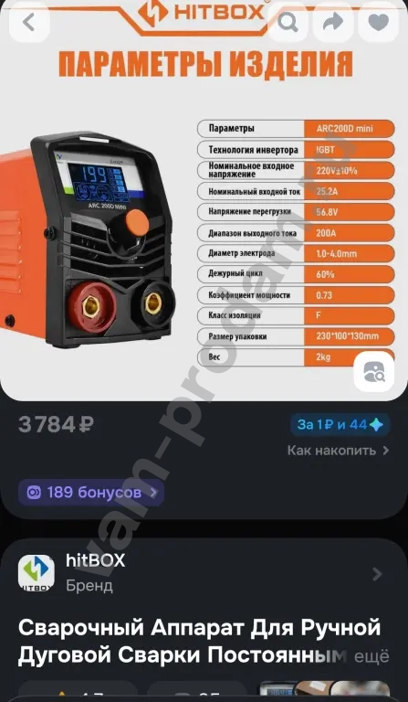 Пользовался два раза, первый пробный. Второй раз нужно было приварить петли. Приварить нормально не удалось, параметры настройки показывает одни, по факту другие. Попытался настроить парой ударов по аппарату, в результате он бахнул и перестал работать. Что с ним, не стал разбираться. Оставил ремонт на потом. Выключил и убал в гараж, уже 1,5 года лежит. Комплект: Аппарат, масса, держак, ремень на плечо.