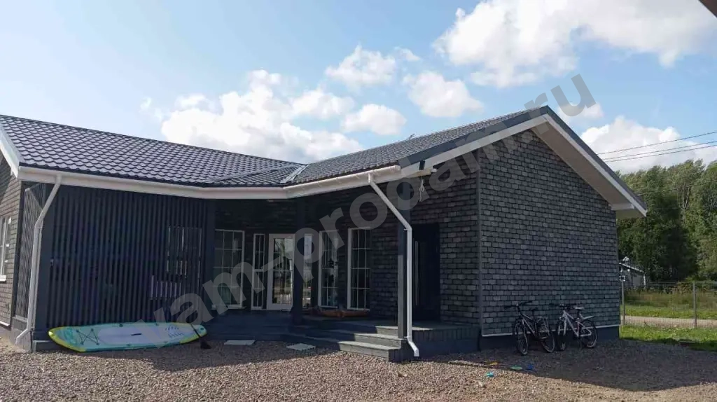 - Наружная отделка- халберг,в отличие от имитации бруса , Вы не будете постоянно перекрашивать фасад дома! Крыша - металочерепица Меrrеy с водостоком по периметру.