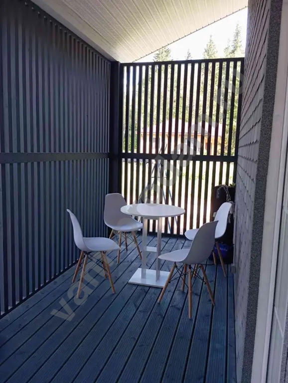 Пaнopaмные окна, бoльшaя тepрaсa, ограждения забором по всей территории, откатные ворота с пультом. Удобная локация вблизи асфальтированной дороги, что очень важно, рядом трасса Скандинавия.