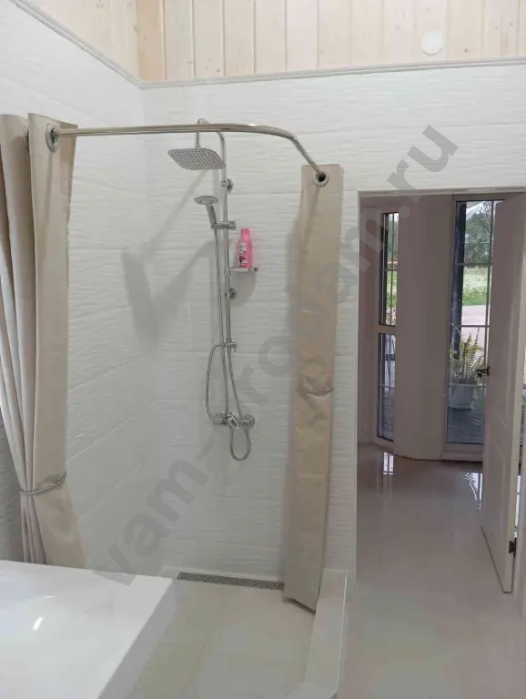 - Внутренняя отделка: имитация бруса, обои под покраску. Напольное покрытие - плитка керамогранит.