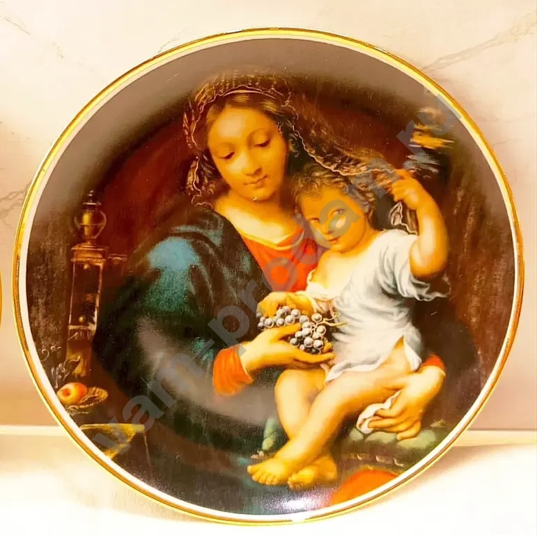 "Мадонна с виноградом" Пьер Миньяр, фарфор, JIESIA (СССР, Литва, Каунас). Отличное состояние, есть небольшая царапина в области подбородка Мадонны. Диаметр - 19,5 см. Стоимость - 1500 руб.