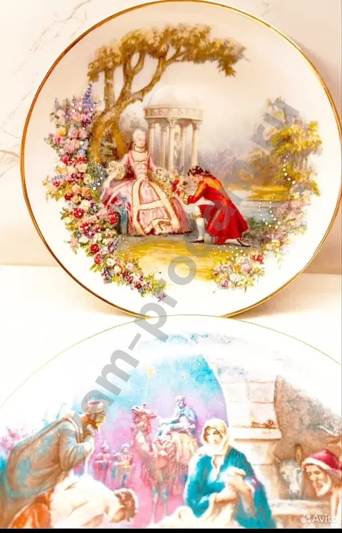 1. Коллекционная фарфоровая тарелка, JIESIA (СССР, Литва, Каунас). "Встреча влюбленных на лоне природы". Деколь с подрисовкой. Состояние отличное, витринное хранение. Диаметр - 19,5 см. Стоимость - 3500 руб.