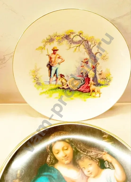 2. Тарелка декоративная настенная "Свидание с пастушком", фарфор, JIESIA (СССР, Литва, Каунас). Отличное состояние, витринное хранение. Диаметр - 19,5 см. Стоимость - 2000 руб.