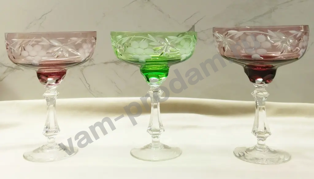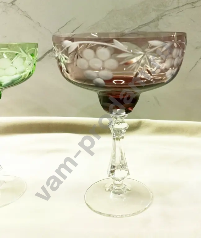 Винтажные вазы-конфетницы на ножке, цветное стекло