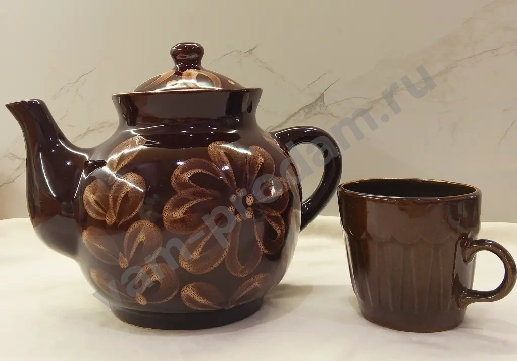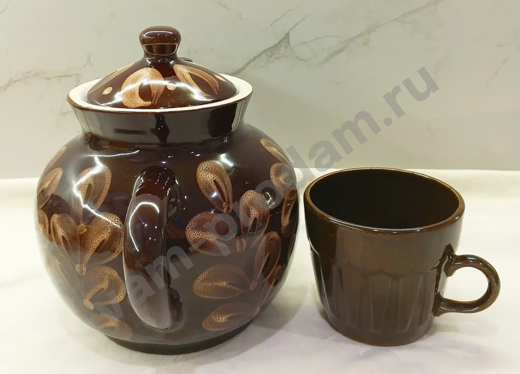 Винтажный заварочный чайник 2.5 л., керамика. Кружка в подарок. В отличном состоянии, без сколов и трещин.