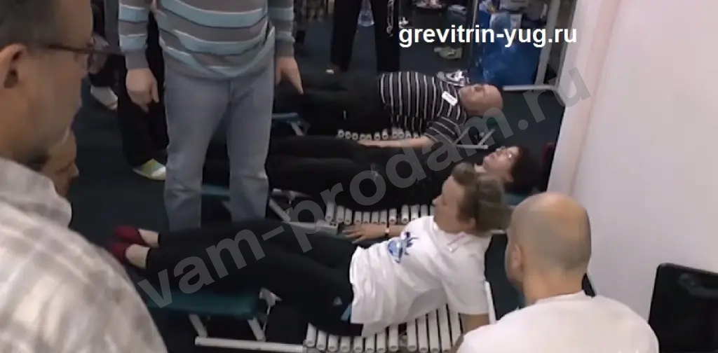 Новинка!!! Кушетка ГРЭВИТРИН-КОМФОРТ ПЛЮС Вибро, цена: 213750 т.р. Удобный тренажер для позвоночника Грэвитрин-комфорт плюс, компактный, надежный, обладает большей тянущей силой за счет увеличения диаметра поперечных ребер. Внешне больше напоминает Грэвитрин-профессионал,высокое качество и простота обслуживания и применения делают его лидером. ЭФФЕКТИВНОСТЬ ЛЕЧЕНИЯ-ТРЕНАЖЕРА ГРЭВИТРИН Давайте вспомним:как наш МИГ разбился во время летного салона в Ле Бурже. Пилоту тогда удалось катапультироваться, хотя и не очень удачно. Компрессия позвоночника составила более 4 см – именно настолько уменьшился рост летчика.Так вот – он и сейчас летает, причем вернулся в строй всего через 2 месяца после травмы! Эффективность Грэвитрин при лечении позвоночника и других патологиях Неосложненный остеохондроз, радикулит, сколиоз 1-2 ст. Межпозвонковая грыжа до 5 мм Межпозвонковая грыжа 5-8 мм Межпозвонковая грыжа 8-16 мм Гипертоническая болезнь Заболевания желудочно-кишечного тракта Гинекологические заболевания Болезни органов дыхания.