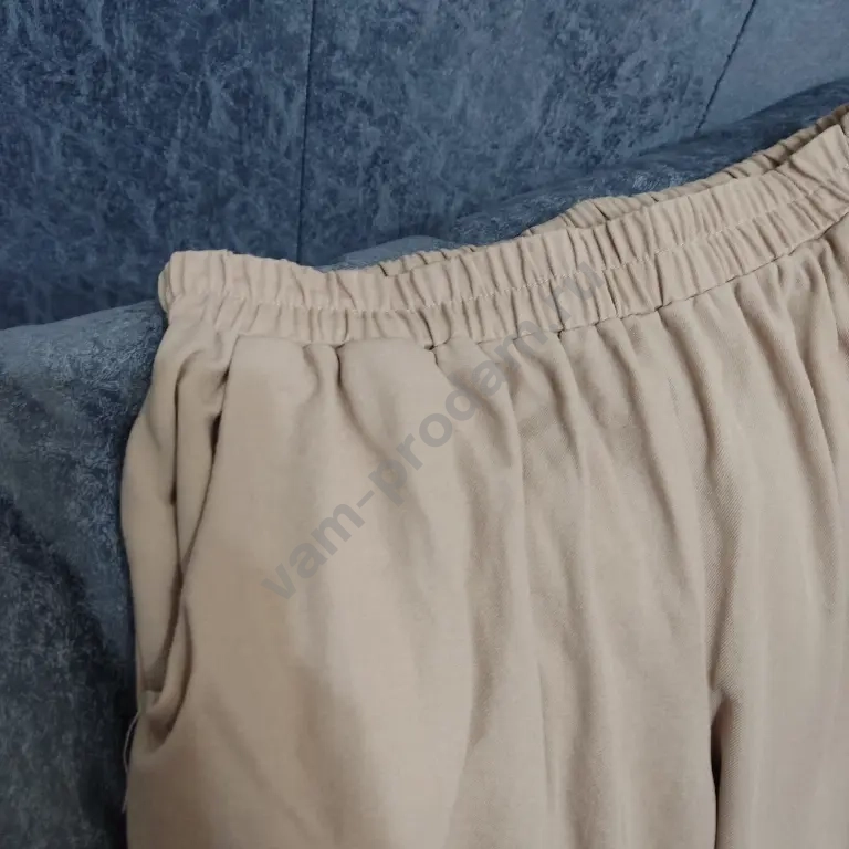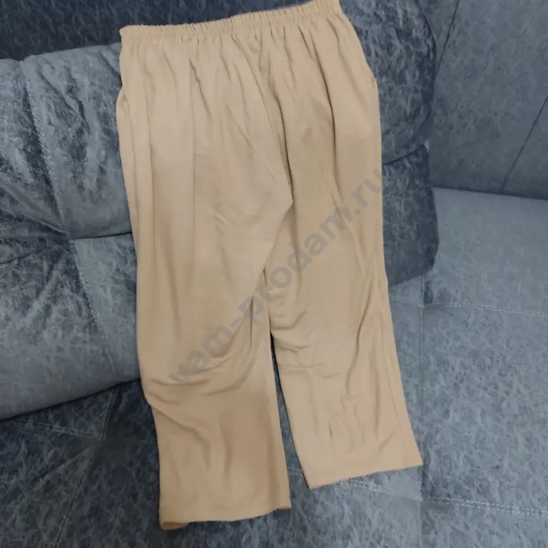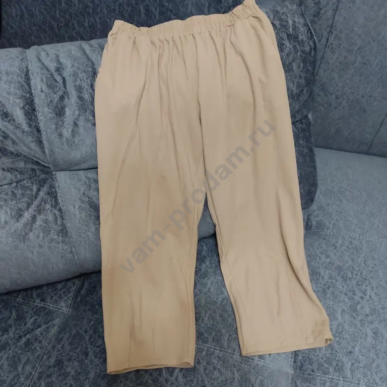 Штаны летние бежевые: размер 44, верх 33, посадка 30, длина 78см укороченный фасон.